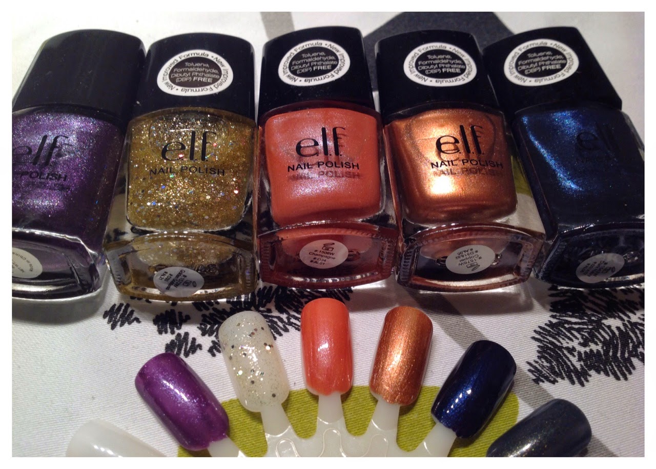| e.l.f. Party Purple, Golden Goddess, Champagne, Copper, Dark Navy |