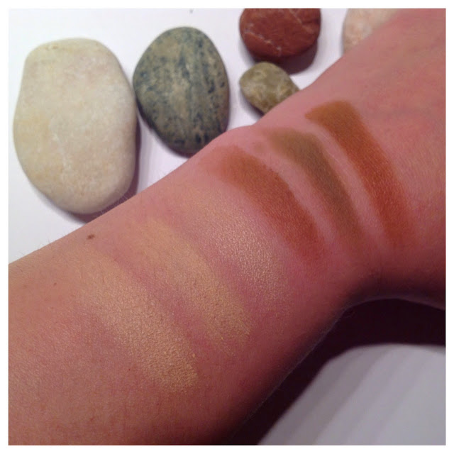 The bronzers are a bit more delicate, though. Since they are also incredibly pigmented, I had problems blending the outer two shades out as bronzers – it seems that I’m still a bit heavy handed. But the middle shade (which doesn’t just look a bit olive in the photo, it actually is like that IRL) is the absolutely perfect contour shades. I have a round face and I rocked incredible cheekbones on Friday. Just sayin’