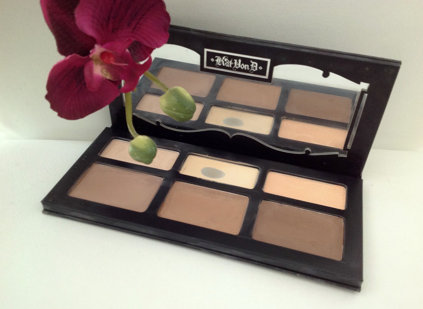 The packaging itself is a cardboard one with the famous Kat Von D lettering. It has a magnetic closing system all around the palette. I find this palette brilliant for traveling, since there is no way it will break on you. I also love the huge mirror inside. On the downside, the cardboard gets quite dirty so if you hate to clean your make-up all the time to keep it pretty, that’s one thing to keep in mind.