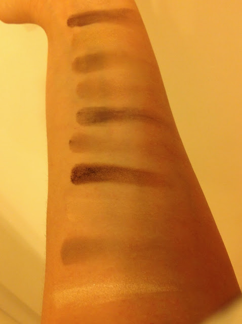 What really fascinates me with these shades is the undertones – you don’t really see them when looking at the palette, but when you swatch it you’re in for a surprise. Just check out the far right swatch (the definer) – while it looks kind of funny brownish-blue in the palette, it gives off a dark red-brown color which is perfect for some added definition.