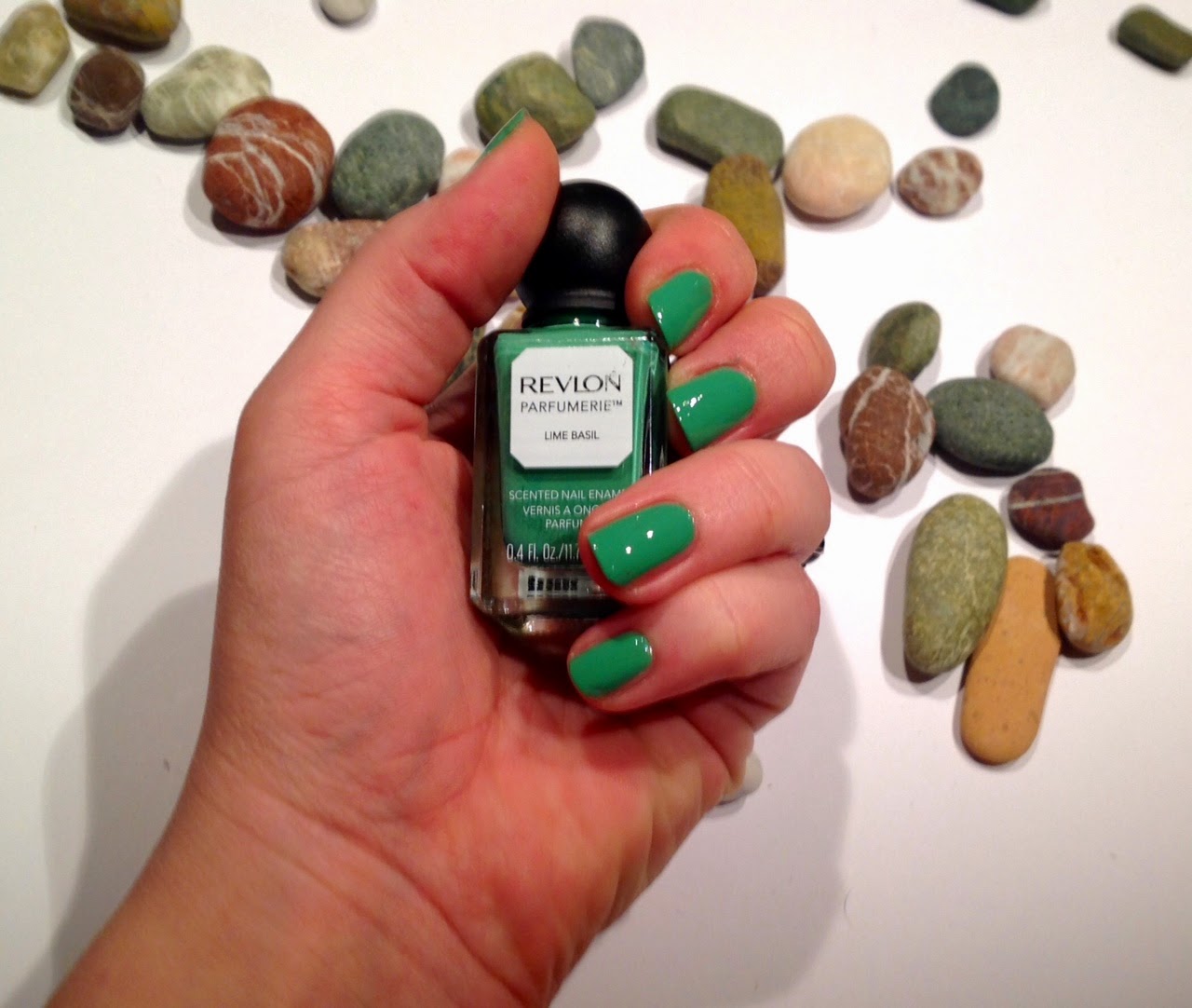 Anyway, I though I would do a review of a polish I found while browsing in Müller (about 7€) the other day – the Revlon Parfumerie nail enamel in the color Lime Basil.