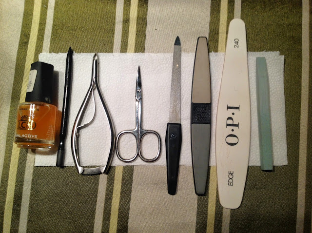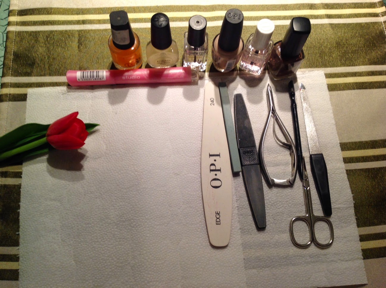 Basically, I put together all the necessary tools – nail files, cuticle nippers, cuticle pusher, small scissors and the likes.