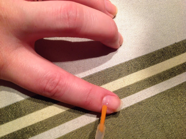 I start by working on my cuticles. If I do this every time I change my nail polish they tend to stay nice, but I sometimes skip this step if I’m in a hurry and then I really need to spare an extra minute on them the next time. First, apply a bit of oil and let it sit for a minute or two.