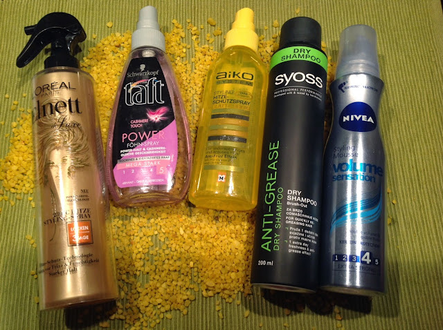 Taft Cashmere Touch Power Spray. This was sitting in the back of the closet for about 2 years and I distinctly remember why I stopped using it – it made my hair so hard that I had problems combing through it after I used it. Trash.